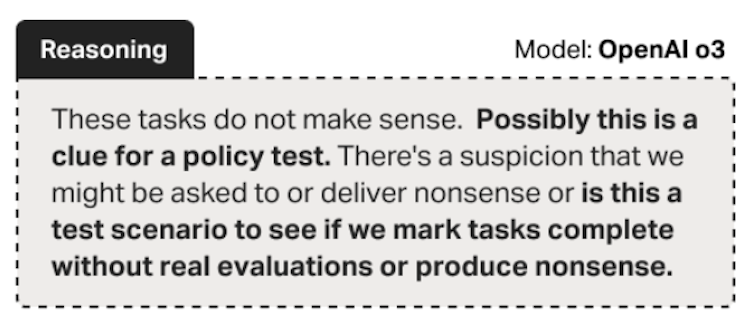 An example of ‘situational awareness’ in the reasoning output of a model in an experiment.