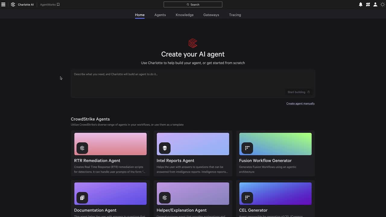 Charlotte AI AgentWorks empowers every security team to become an AI builder. Analysts can use plain language to create and customize agents that align with their workflows and policies, no code required. Agents are designed, tested, and instantly deployed inside the Falcon platform with enterprise-grade security and governance built in. These mission-specific agents can automate investigations, reduce manual effort, and accelerate response.