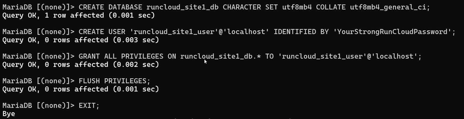 CREATE USER 'runcloud_site1_user'@'localhost' IDENTIFIED BY 'YourStrongRunCloudPassword';