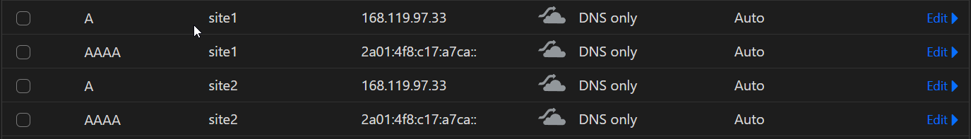 Also, create a CNAME record for www pointing to runcloud_site1.com, or a separate A record if you prefer. Add AAAA records if using IPv6.