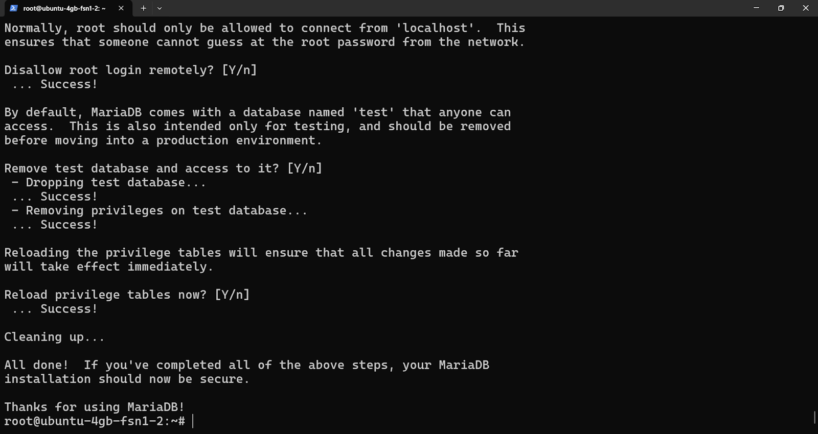 Create a separate database and user for each site to isolate data and improve security. If you create multiple websites on the same server, you must execute the following commands separately for each site you create, and with unique credentials.