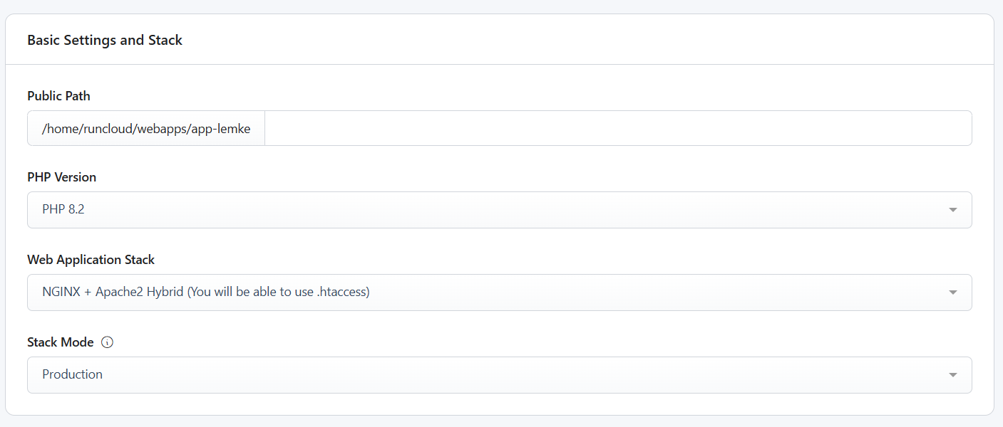 Select the correct PHP version (try to match your old cPanel site if possible). RunCloud will set up the necessary folders and configuration for your site.