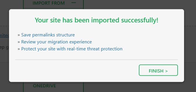 Follow the on-screen prompts and proceed when ready. The plugin will warn you that it’s about to overwrite the site.