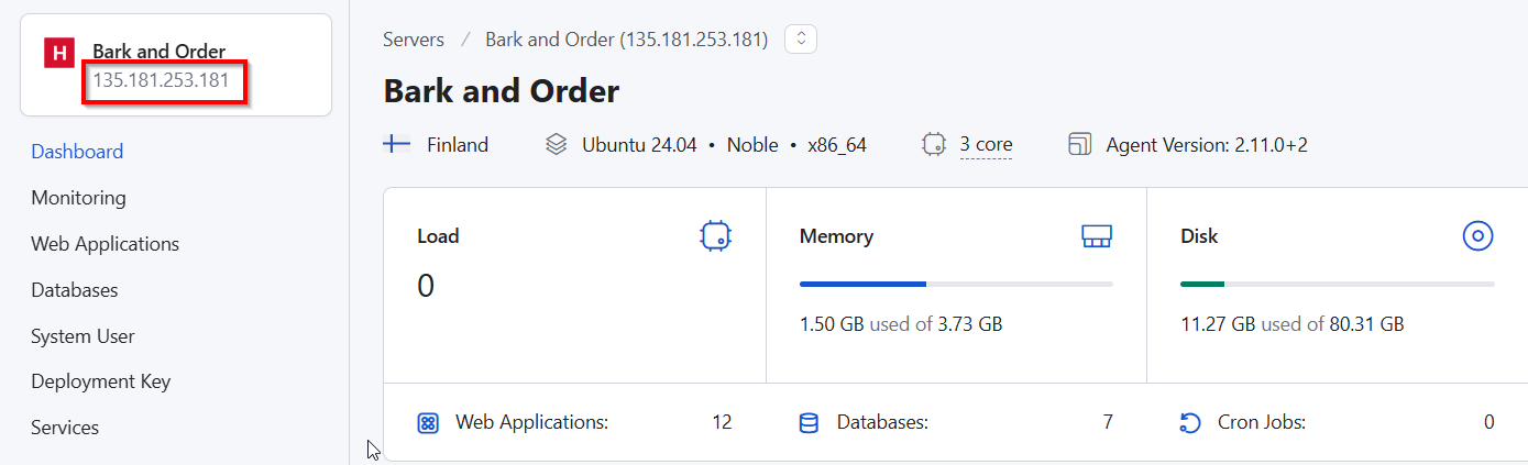 - Find Your Server IP Address: In your RunCloud dashboard, go to your server details. Your server’s public IP address will be listed there. Copy it.