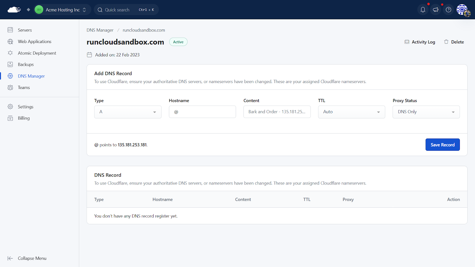 If you are using Cloudflare, you can also use RunCloud’s built-in DNS manager to set up and update records without leaving the dashboard.