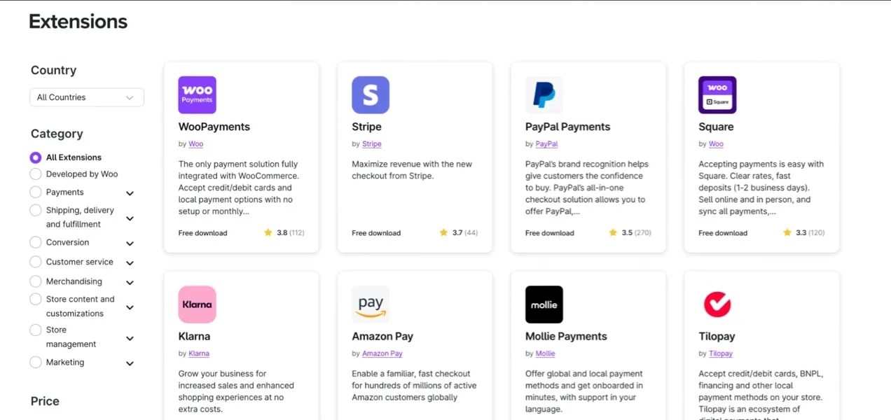 With WooCommerce, flexibility comes standard: The WordPress plugin repository has more than 54,000 options that help with everything from design to functionality and marketing. WooCommerce stores can access an additional extension marketplace with over 800 add-ons built specifically for ecommerce.