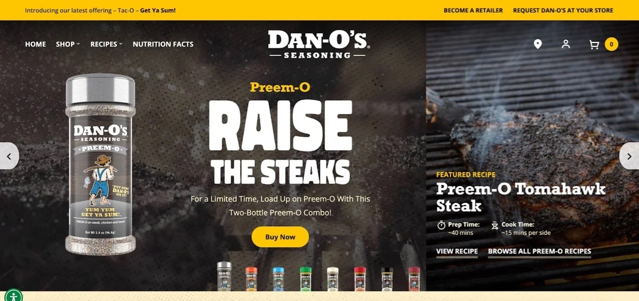 • Dan-O’s Seasoning. A large seasoning business that sells with Woo, on channels like Walmart and Amazon, and in more than 40,000 retail locations.