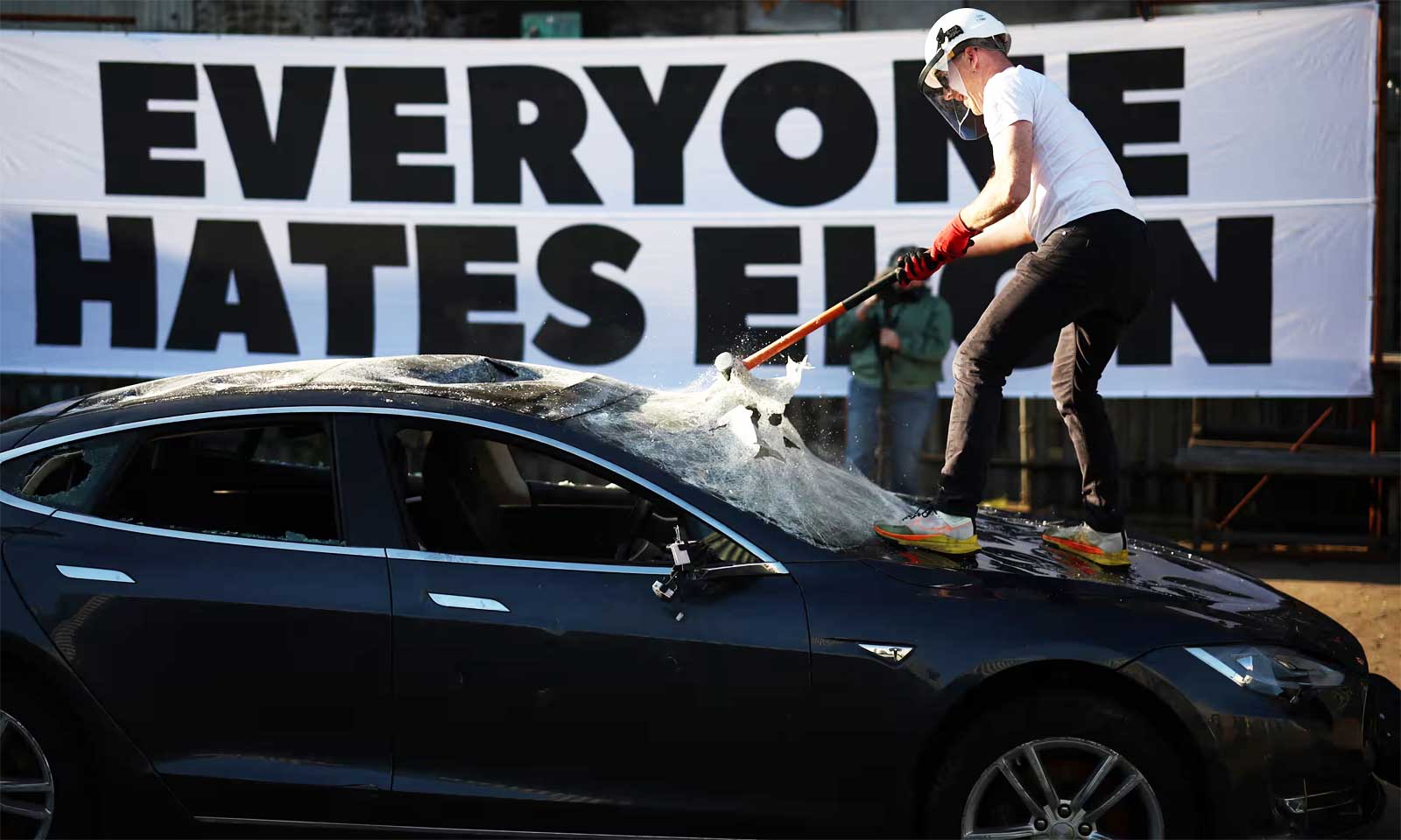 Protesters Smash Tesla in London Art Installation Targeting Elon Musk and Wealth Inequality