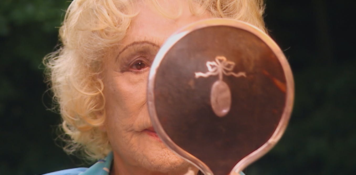 Montages depict Riefenstahl’s life from youth to old age, culminating in an image of an elderly lady who, even late in life, manipulates camera angles and lighting to ensure a more flattering appearance.
