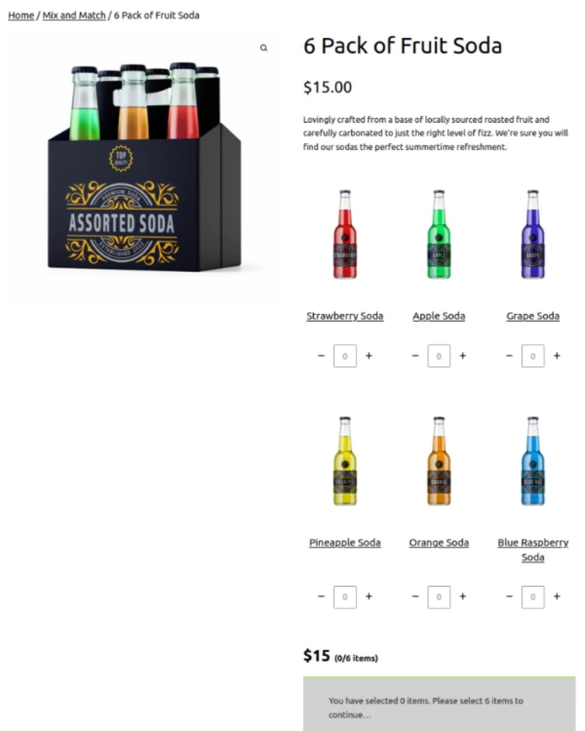 Extensions like Mix and Match Products let you put the choice in the hands of your customers. Let’s say they want to buy a few bottles of fruit soda. They might feel restricted if you offer bundled options for the same flavor or pre-built bundles of different flavors. Instead, let them choose the flavors and specify the quantity.