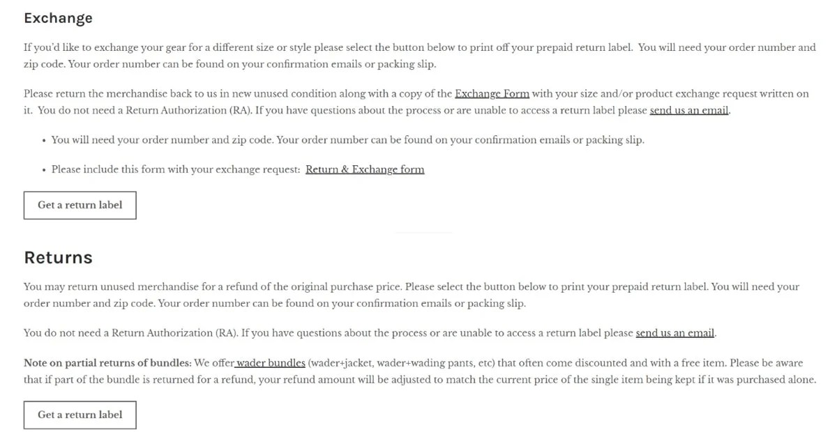 Analyze your returns data to identify patterns, too. Are certain products returned more frequently? Is there a common reason given for returns? Use this data to improve your products or provide more information in your return policy, like in this policy from Dryft Fishing.