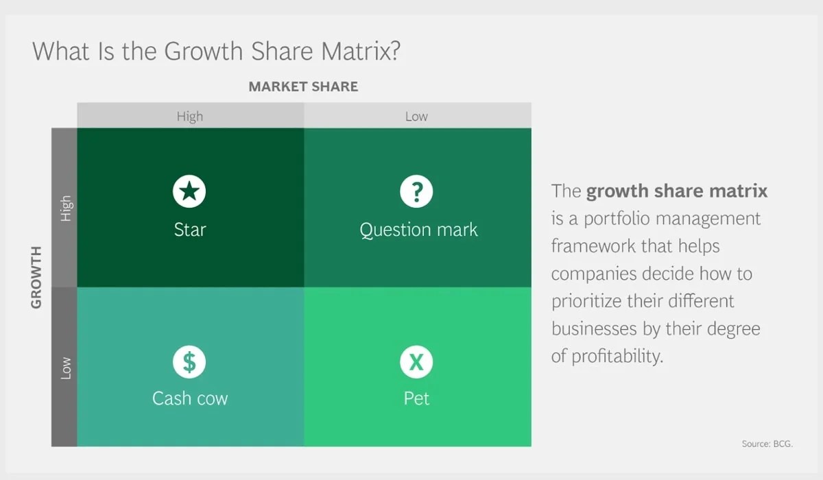Use frameworks like the BCG matrix, also known as the growth-share matrix, to categorize your products: