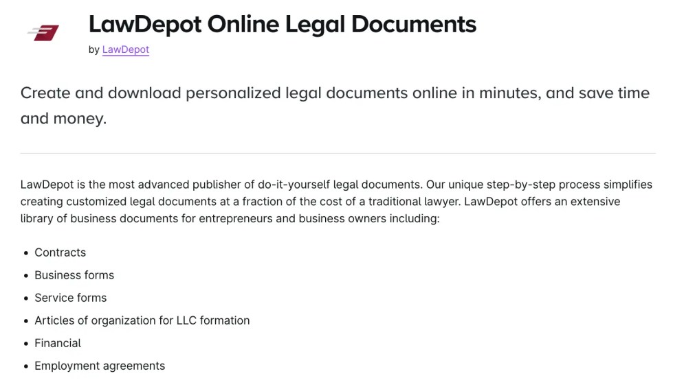 LawDepot Online Legal Documents, for example, allows you to create customized legal documents in minutes. You might be spending hours and hours creating all the various forms and contracts you need to run your business. How much time might a service like this save you?