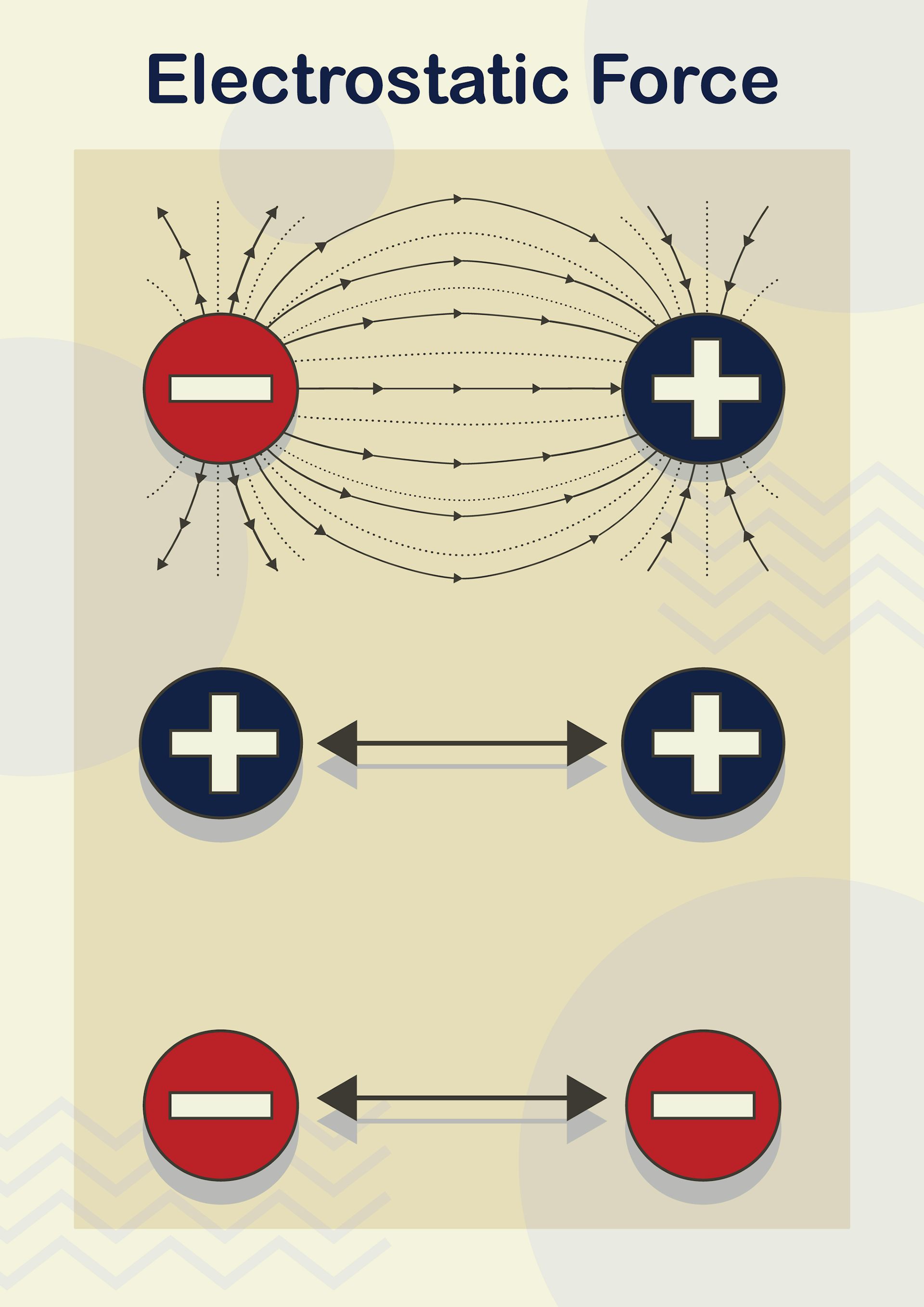 Within an atom, electrostatic force is what keeps electrons orbiting the nucleus. The ones farthest away from the nucleus can sometimes escape, leaving the atom positively charged (more protons than electrons). By contrast, other atoms can attract an electron and become negatively charged (more electrons than protons).